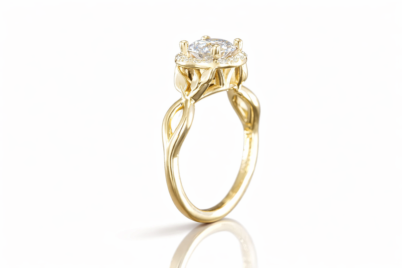 YELLOW GOLD BUDDING HALO ENGAGEMENT RING