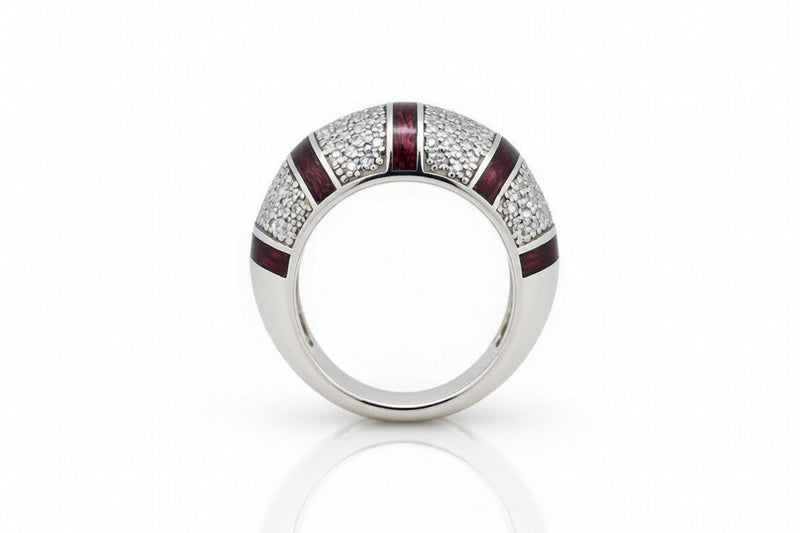 14K WHITE GOLD COCKTAIL DIAMOND RING WITH PURPLEHEART WOOD