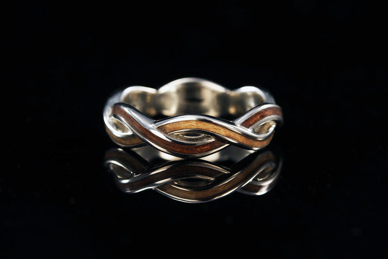 INTERLACED WALNUT AND MAPLE WOOD CRISS CROSS OVER RING