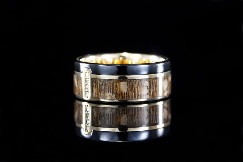 TEXTURED BLACK ZIRCONIUM AND YELLOW GOLD EDGE RING