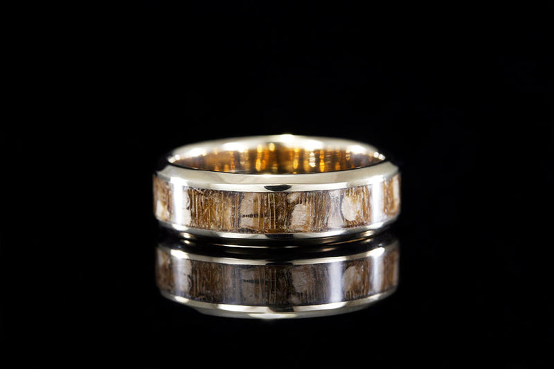 MEN'S WHITE GOLD WHISKEY BARREL WOOD RING