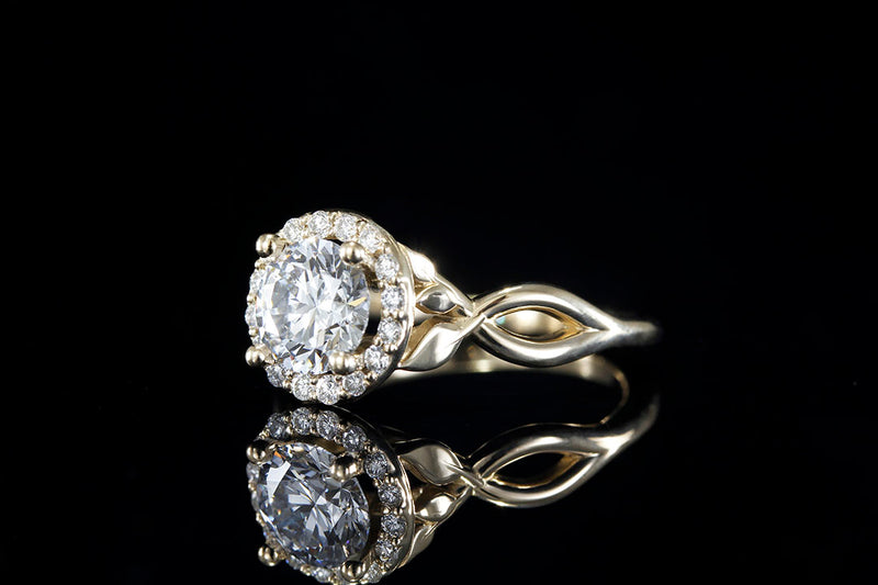 YELLOW GOLD BUDDING HALO ENGAGEMENT RING