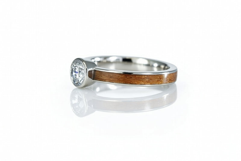 1.3CT DIAMOND CELTIC KNOT ENGAGEMENT RING WITH WHISKEY BARREL WOOD INLAY