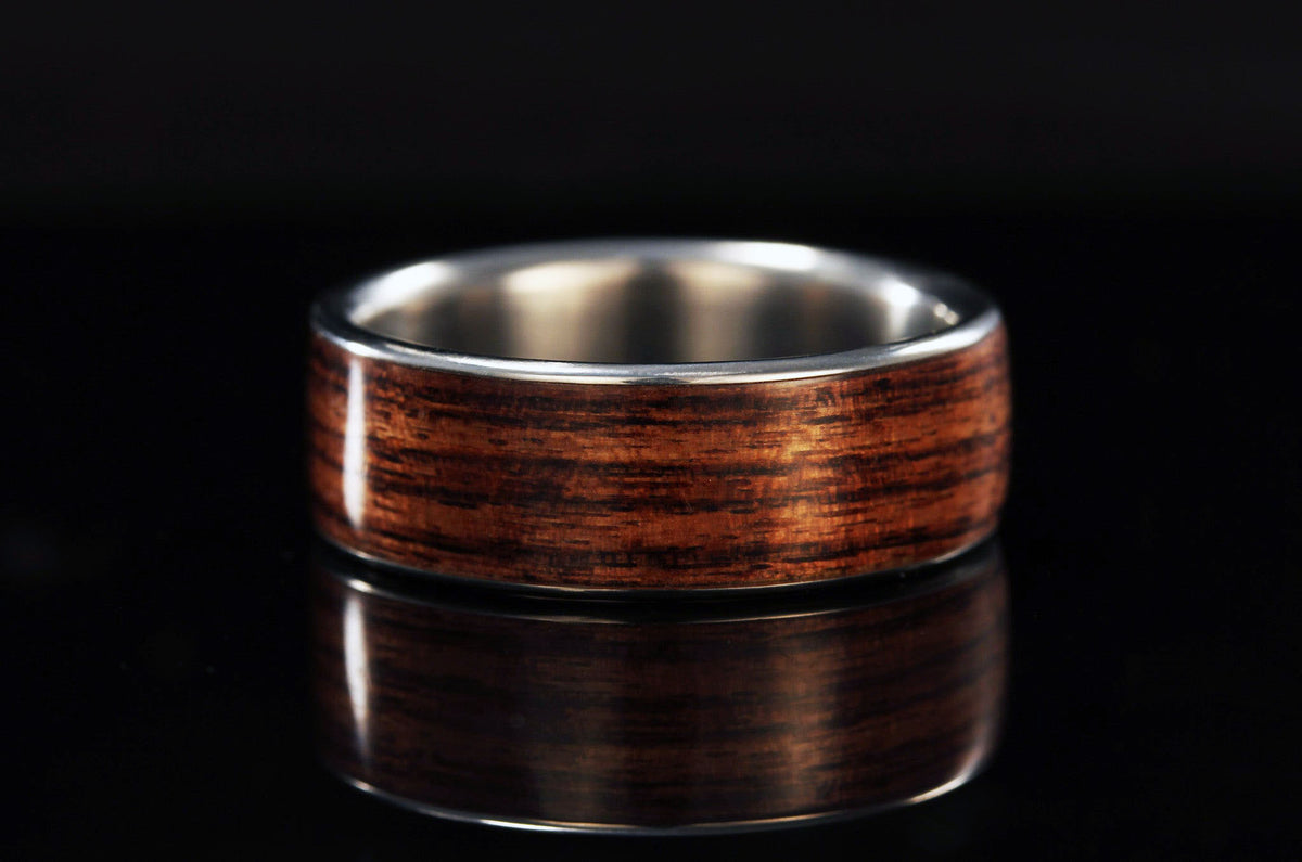 HAWAIIAN KOA OFFSET WOOD PLATINUM RING