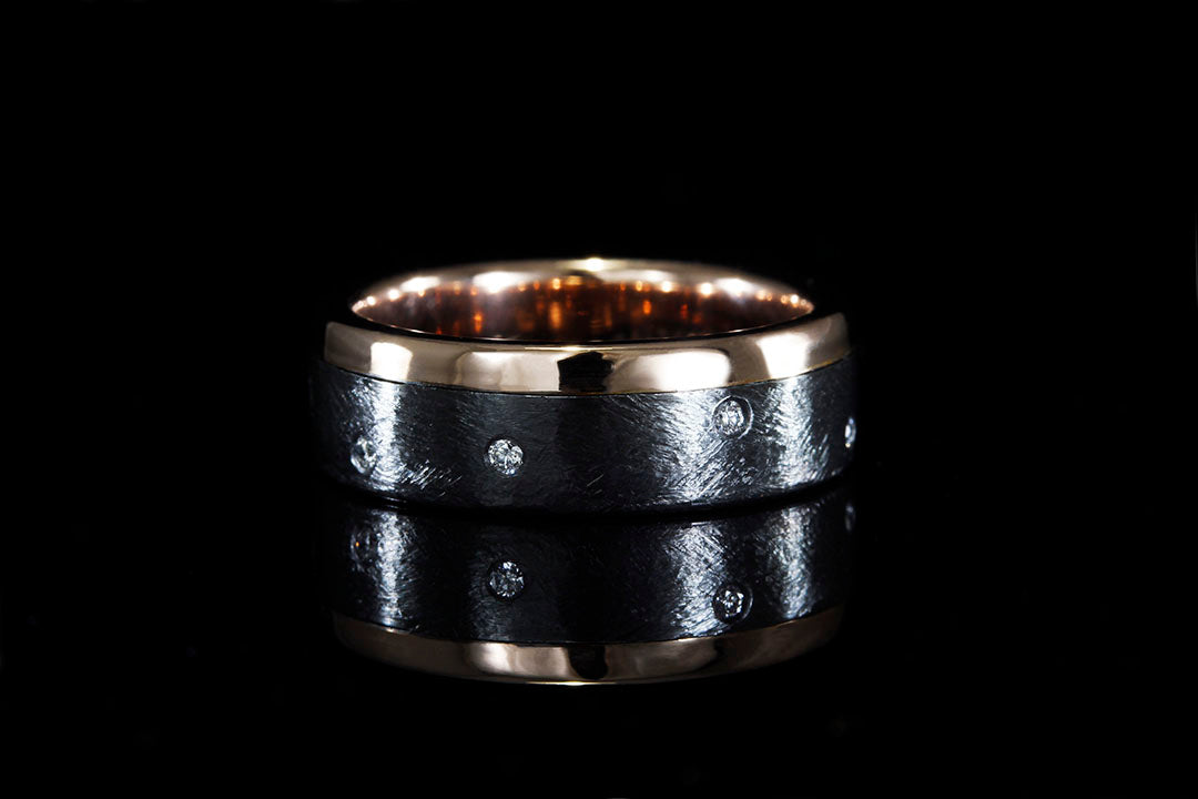 TITANIUM BEZEL SET DIAMOND WHISKEY BARREL WOOD RING