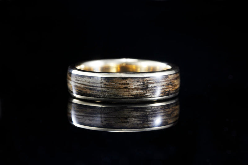 MEN'S WHITE GOLD WHISKEY BARREL WOOD RING
