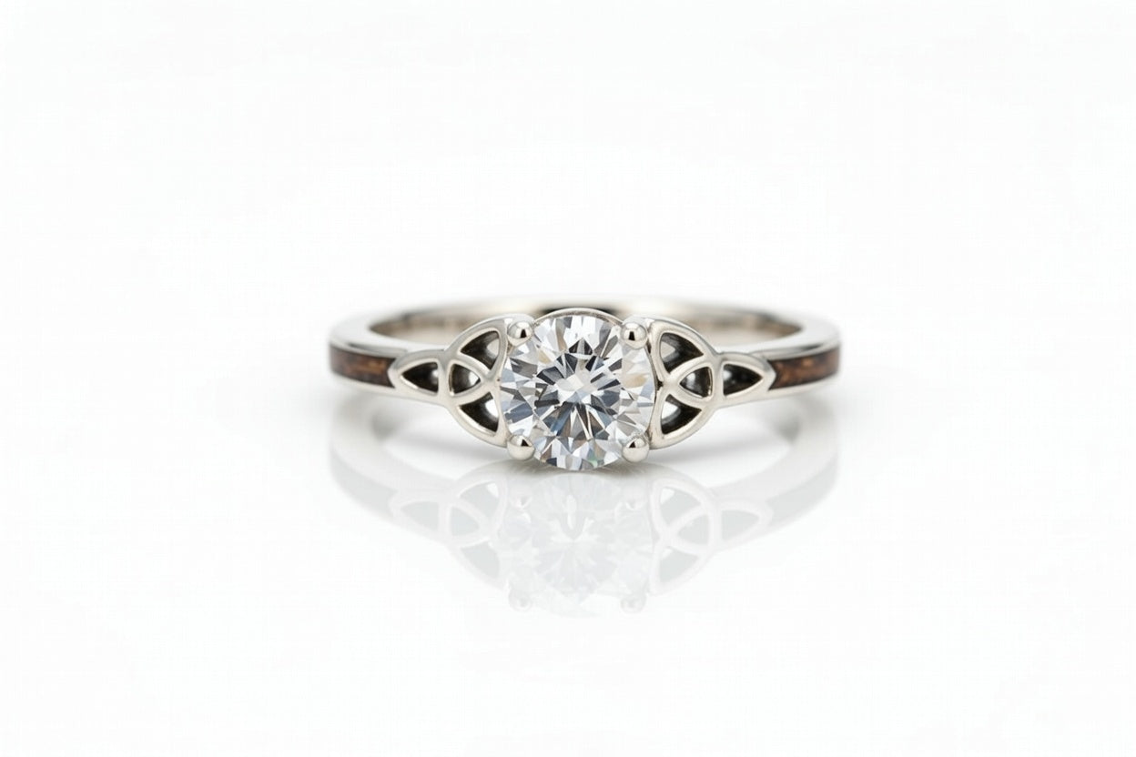 WHISKEY BARREL WOOD 14K WHITE GOLD CELTIC KNOT RING