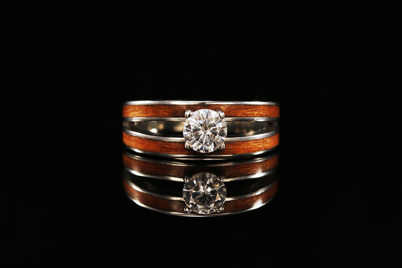 CHERRY WOOD 14K GOLD DIAMOND SPLIT WOOD RING