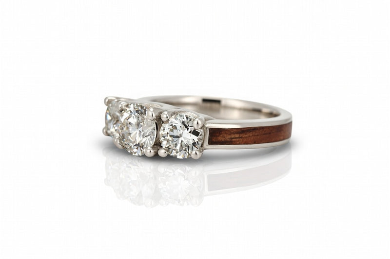 BUBINGA WATERFALL WOOD PLATINUM DIAMOND 3 STONE CURVE RING