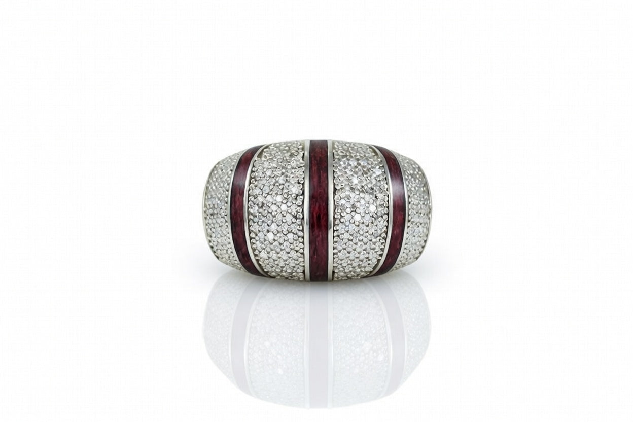 14K WHITE GOLD COCKTAIL DIAMOND RING WITH PURPLEHEART WOOD