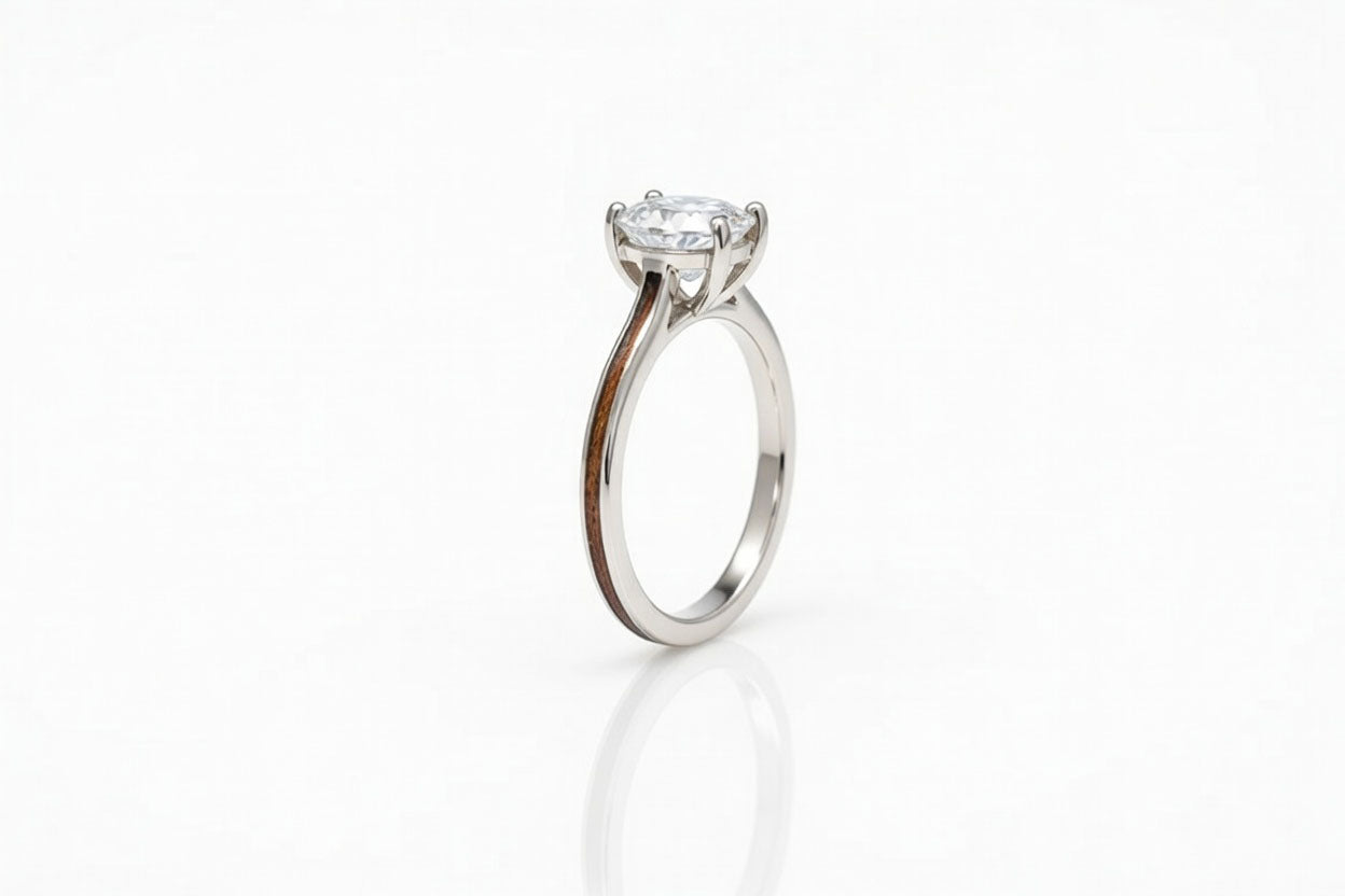 Women's Platinum and Wood Ring