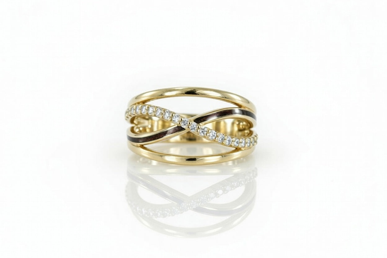 TEAK WOOD INLAY INFINITY RING WITH DIAMONDS