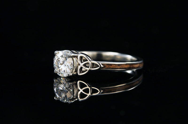 WHISKEY BARREL WOOD 14K WHITE GOLD CELTIC KNOT RING