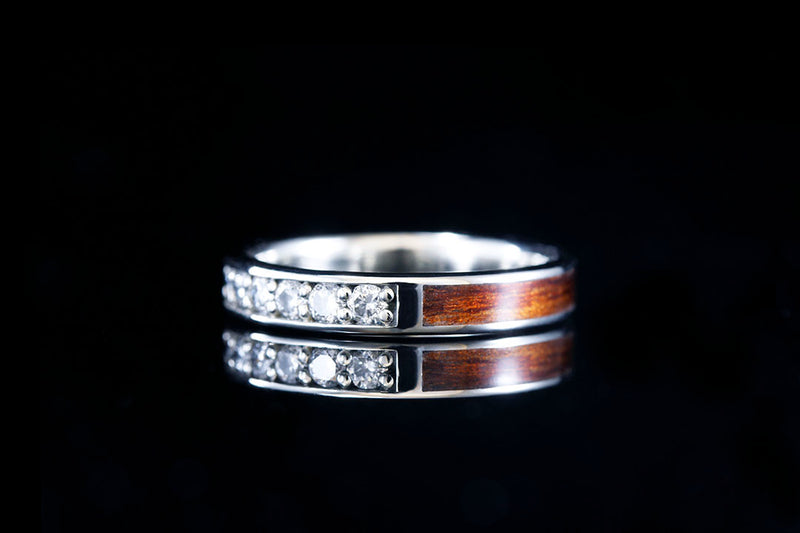 HAWAIIAN KOA WOOD 14K WHITE GOLD DIAMOND RING