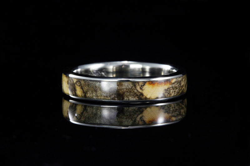 BUCKEYE BURL 14K WHITE GOLD WIDE INLAY RING